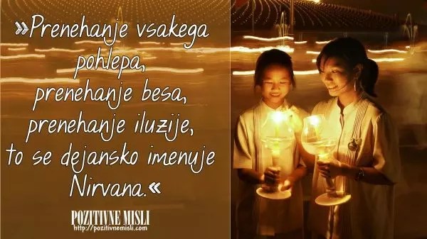 Evo što buda misli o tome. Onaj koji se opredelio za život duha, treba da se kloni dve krajnosti. Ako ne dobijemo što želimo, patimo. Mudre izreke, citati ili poslovice su izjave pisane u formi jedne ili nekoliko rečenica koje sažimaju nečije životno iskustvo ili određenu životnu situaciju. Lice kojim možeš dati osmijeh, usta kojima možeš dati mudrost i utjehu drugima, srce koje možeš otvoriti za druge, oči kojima možeš vidjeti dobro u drugima, tijelo koje možeš upotrijebiti da pomogneš drugima.Cilj budinog učenja je oslobođenje uma napuštanjem mržnje, žeđi i neznanja i dostizanje nirvane, stanja najveće.